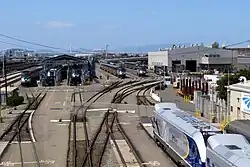 The Amtrak Oakland Maintenance Facility is a passenger train servicing depot in Oakland, California. It is located on the Union Pacific Railroad Niles Subdivision, 1.8 track miles (2.9 km) north of Oakland–Jack London Square station.[1] It provides maintenance for Amtrak's regional and long-distance trains in northern California, including the California Zephyr, Capitol Corridor, and San Joaquins.
