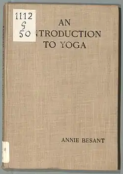 An introduction to Yoga is a book by Annie Besant from 1908. The book consists of four lectures held by the author on the practice of yoga, its connection to Indian philosophy and practical application to everyday life.[1] The book has the purpose to familiarise the West with yoga and to promote Indian culture. Besant additionally adds some of her own opinions on the topic and uses the lectures to promote Theosophy as well.[2]