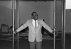 The Anacostia Community Museum was originally described as "an experimental store-front museum" by the Smithsonian Institution in 1966. Smithsonian Secretary S. Dillon Ripley intended for the museum to serve as an outreach opportunity to bring more African Americans to the National Mall to visit Smithsonian museums. The idea, which rose from a Smithsonian-hosted conference in 1966, came into reality in March 1967, when the Smithsonian acquired the Carver Theater in the Anacostia neighborhood. The Smithsonian sought community support, and a council of local Anacostia residents came together to advise on the project. John Kinard was appointed director of the museum in June 1967.[6] A pastor and activist during the Civil Rights Movement, Kinard was heavily involved in the Anacostia neighborhood, and he made sure that the young people of the neighborhood were involved in the creation of the museum.[7][8] Every week, the museum's Neighborhood Advisory Committee[9] of community members would meet to help plan the programming and exhibitions.[7] Staff and community members worked side by side to change the building from a defunct movie theater into an exhibition space. The community also assisted in choosing what objects would be displayed.[8]