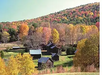 Ananias Pitsenbarger Farm is an historic home and farm complex located in the unincorporated community of Dahmer, near Franklin, Pendleton County, West Virginia.[2] The original section of the house was built in 1845, and includes the 2+1⁄2-story section on the north end, with a later 1+1⁄2-story addition built about 1900. The house rests on a foundation of coursed rubble stone and is clad in weatherboard siding. It has a standing-seam metal gable roof. Also on the property are 15 log and frame contributing outbuildings. They include the cellar house, two hog pens, a stable, woodworking shop, carriage house, chicken coop, granary (photo 10), shed, privy constructed by the Works Progress Administration, spring house, three small hay barns, and a large double-crib log hay barn. Also on the property is the Pitsenbarger Cemetery.[2][3]