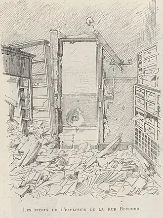 ![]() 7 November 1888 bombings, in Le Monde illustré, here the one on Rue Boucher | |||