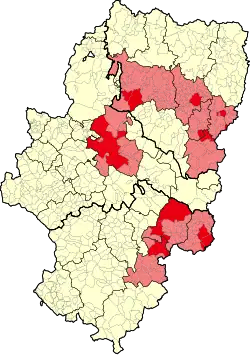 The uprising quickly spread throughout Aragon.[29] Revolutionaries proclaimed libertarian communism in villages throughout the region, including in: Alcalá de Gurrea, Alcampell, Almudévar,[30] Albalate and Belver de Cinca in the province of Uesca;[31] and Alcorisa, Castellote,[30] Beceite,[31] Mas de las Matas and Valderrobres in the province of Teruel.[29] In these towns, anarchist groups stormed Civil Guard barracks, took over the town halls and arrested civil authorities. As they burned property registers and other official documents, they explained their new system of libertarian communism to gathered citizens and reorganised the supply of goods according to this system. Revolutionaries in these towns did not attempt to take over other areas and instead waited for the arrival of state forces. The insurrection in these areas was quickly defeated, with political repression following soon after. Two insurgents were killed in Alcorisa, one in Alcañiz and another in Barbastro; two Civil Guards were also killed, one in Alcañiz and the other in Barbastro.[31]