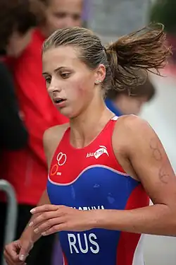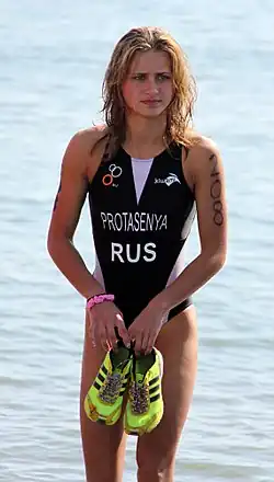 Anastasia Protasenya (born 22 December 1993, in Moscow), patronymic Alexandrovna, Russian Анастасия Александровна Протасеня, is a Russian professional triathlete, member of the National Russian Team, National Youth Champion of the year 2010 and number 4 in the Junior category.[1]