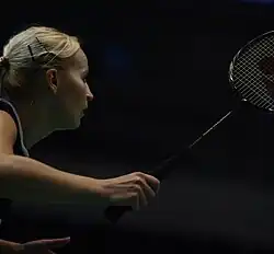 Anastasia Vladimirovna Russkikh (Russian: Анастасия Владимировна Русских; born 20 May 1983) is an international badminton player from Gatchina, Russia.[1] She entered her first tournament at age 9 in Sweden and finished in third place. She began playing professionally with her local Gatchina Badminton Club as well as a larger Danish club in Skaelskor, Denmark. In 2010, she played for the Vendsyssel Elite Badminton club.[2] Russkikh is one of Russia's top badminton players, and is a high-ranking competitor in women's and mixed-doubles competitions. Together with her partner in women's doubles, Petya Nedelcheva from Bulgaria, she won the silver medal at the 2010 European Badminton Championships.[3]