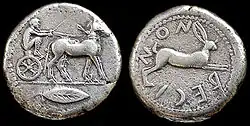 Anaxilas' daughter was married to Hiero.[8] Anaxilaus died in 476 BC, leaving Micythus guardian of his children. The children only gained control of their inheritance in 467 BC, when Leophron became tyrant. However, in 461 BC the new rulers were removed by a popular revolt of the citizens of both Rhegium and Messana.[9]
