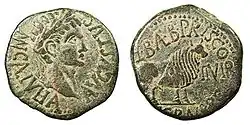 Ancient Iberian coinage began in the fifth century BC, and widespread minting and circulation in the Iberian peninsula began late in the third century, during the Second Punic War.[1] Civic coinages - emissions made by individual cities at their own volition - continued under the first two and a half centuries of Roman control until ending in the mid-first century AD.[2] Some non-civic coins were minted on behalf of Roman emperors during this period and continued to be minted after the cessation of the civic coinages.[3] After the cessation of the civic coinages, these Imperial coins were the only coins minted in Iberia until the coins of the Suebi and Visigoths.