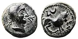 To fund their war effort, the Carthaginians minted gold, electrum, silver and bronze coins.[23] These coins may have been minted in the Barcid 'capital' of Carthago Nova or perhaps were minted simply in Carthaginian military camps. In addition to these coins and those of Gadir and Ebusus, Phoenician colonies along the south coast such as Malaka and Sexi also minted bronze coins.[24]