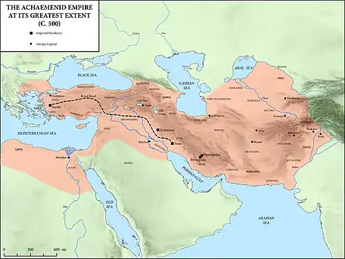 Following the fall of the Medes, the Achaemenid Empire was the first of the Persian Empires to rule over most of the Near East and far beyond, and the second great Iranian empire (after the Median Empire). At the height of its power, encompassing approximately 7,500,000 km2 (2,900,000 sq mi), the Achaemenid Empire was territorially the largest empire of classical antiquity, and the first world empire. It spanned three continents (Europe, Asia, and Africa), including apart from its core in modern-day Iran, the territories of modern Iraq, the Caucasus (Armenia, Georgia, Azerbaijan, Dagestan, Abkhazia), Asia Minor (Turkey), Thrace (parts of eastern Bulgaria), Macedonia (roughly corresponding to present-day Macedonia in northern Greece), many of the Black Sea coastal regions, northern Saudi Arabia, Jordan, Israel, Lebanon, Syria, Afghanistan, Central Asia, parts of Pakistan, and all significant population centers of ancient Egypt as far west as Libya. It is noted in western history as the foe of the Greek city states in the Greco-Persian Wars, for freeing the Israelites from their Babylonian captivity, and for instituting Aramaic as the empire's official language.