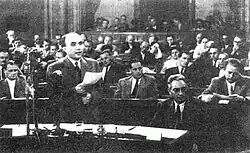 András Hegedüs (Hungarian: [ˈɒndraːʃ ˈhɛɡɛdyʃ]; 31 October 1922 – 23 October 1999) was a Hungarian Communist politician who served as Chairman of the Council of Ministers from 1955 to 1956. He fled to the Soviet Union on 28 October, the fifth day of the Hungarian Revolution of 1956, but returned in 1958 and taught sociology.