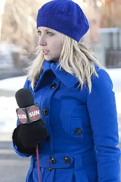 Slobodian worked as a television news reporter, producer, and anchor for Citytv Winnipeg, before and after its acquisition by Bell Media in 2006.[2][8][9] Later, Slobodian was hired by Global Winnipeg, first in a term position in 2007, and then as a full-time weather anchor.[10] She stayed with Global until being hired in 2009 to become Shaw TV Calgary's first weather anchor.[10][11][12][13] She worked briefly for CBC Calgary until 2011, when she was hired by Sun News Network to co-host a new morning show, from Calgary.[13] Called The Roundtable, the show was also co-hosted by Alex Pierson and Pat Bolland, both in Toronto.[2] She moved on to CTV Winnipeg in October 2012 to be their Late Night Anchor.[1][14]