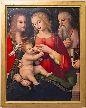 He was the son of a dancing-master at Siena, where he flourished from 1507 to 1525. He was the pupil of a Sienese painter, named Giovanni Battista Giusi, and they together painted an altar-piece, representing the Virgin and Child, with Saints, which is in the Siena Academy. In 1524, he painted the Baptism of Christ for the baptistery of the cathedral of the same city. In 1525 the brothers went to Florence, and in the same year Andrea, and probably Raffaello also, was registered in the Painters' Guild. A Holy Family by Andrea, who was the better artist of the two, is in the Uffizi Gallery at Florence, and another Holy Family, ascribed to him, is in the Berlin Gallery. The beautiful altar-piece, a Holy Family displayed at the church of Torre di Bibiano, long attributed to Baldassare Peruzzi, has been attributed to Andrea. The brothers appear to have worked under the influence of Fra Bartolommeo.