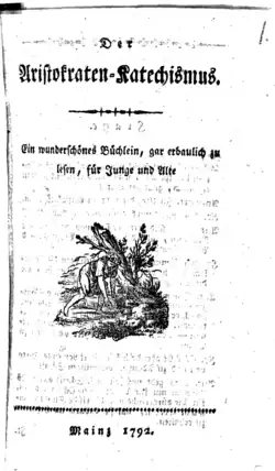 - Hofmann, Andreas Joseph (1792). Der Aristokraten-Katechismus: ein wunderschönes Büchlein, gar erbaulich zu lesen : für Junge und Alte (in German). Mainz.
