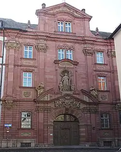 In 1784, Hofmann was made Chair of Philosophy in Mainz as part of the progressive reforms of Elector Friedrich Karl von Erthal[1] that had made the University of Mainz one of the centres of Catholic Enlightenment.[19] Like many other future members of the Jacobin Club of Mainz, he was a member of the secret society of the Illuminati (under the name Aulus Persius[20]) but the Illuminati were outlawed in 1785 and the lodge dissolved soon after.[21] Hofmann first taught History of Philosophy until 1791, when he also became chair of natural law. Besides philosophy and law, Hofmann also was talented in languages. He was proficient in Latin, Ancient Greek, French, Italian, and English, and offered classes in English on Alexander Pope over many years.[14] Among his students were Klemens von Metternich, who later became Chancellor of State of the Austrian Empire and the architect of the reactionary European Restoration, and Johann Adam von Itzstein, who became a leading liberal politician and member of the 1848 Frankfurt Parliament.[22] As a liberal and progressive thinker, Hofmann supported the use of German instead of Latin in University lectures[1] and in church.[23] Eventually he became disillusioned with the pace of the reforms in Mainz[19] and welcomed the French Revolution from the start. As Hofmann declared his support of the ideas of the French Revolution openly in his lectures, he was soon spied on by the increasingly reactionary Mainz authorities,[24] who had outlawed all criticism of state and religion on 10 September 1792.[25] However, before the investigation of his activities had progressed beyond the questioning of his students, the archbishop and his court fled from the advancing French troops under General Custine, who arrived in Mainz on 21 October 1792.[26]