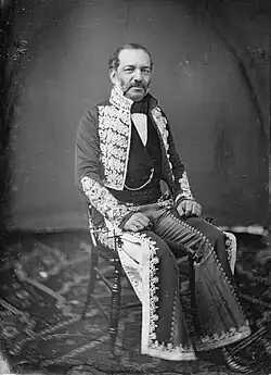 Andrés Pico (November 18, 1810 – February 14, 1876) was a Californio who became a successful rancher, fought in the contested Battle of San Pascual during the Mexican–American War, and negotiated promises of post-war protections for Californios in the 1847 Treaty of Cahuenga. After California became one of the United States, Pico was elected to the state Assembly and Senate. He championed the Pico Act of 1859, seeking to split California into two parts in the interest of fair tax representation of the Californios in the southern third of the state. He was appointed as the commanding brigadier general of the state militia during the U.S. Civil War.
