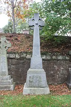 Davidson died at home, Corrennie Gardens[21] in Edinburgh on 26 January 1902. He is buried in Grange Cemetery on the south side of the city. The grave lies on the southern edge of the north-west quadrant, backing onto the embankment over the central vaults.