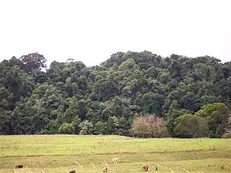 The Reserve's red-brown soil is derived from a basaltic flow from the nearby Mount Warning, and later volcanic flows from the Nightcap Range.[2] Average annual rainfall at Lismore is 1,340 millimetres (53 in).[3]