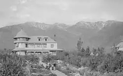 Facing south, away from the street, the house offered vistas of the Los Angeles Basin, the Pacific Ocean, and Santa Catalina Island. The house had a three-story rotunda that allowed a view to the San Gabriel Mountains to the north.[6] McNally also built a private rail spur from Altadena Junction to his property to store his private railroad car.[6] The grounds were lavishly landscaped, with an aviary along Mariposa St. His gardener also looked after the deodar cedars that grew along Santa Rosa Avenue. These trees became Christmas Tree Lane, which is also listed in the National Register.