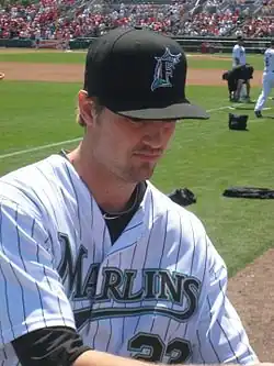 Miller made his MLB debut on August 30, 2006, at Yankee Stadium against the New York Yankees, pitching one scoreless inning and allowing one baserunner, Craig Wilson, on a hit by pitch.[19] In eight games, Miller posted a 0–1 record with a 6.10 ERA, walking ten batters in 9+1⁄3 innings, including seven of 16 left-handers faced. The Tigers advanced to the playoffs and did not include him on the roster.[20] They lost to the St. Louis Cardinals in the 2006 World Series.[21] Baseball America rated Miller's slider as the best in the Tigers organization and the franchise's second-best prospect overall.[22]