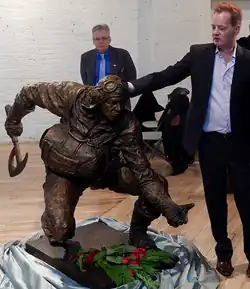 A larger-than-life bronze statue of Pilot Officer Mynarski, sculpted by Keith Maddison, was dedicated in 2005 outside the former Officers' Mess, now the St George Hotel, at RAF Middleton St. George, the bomber base in England where he served. The memorial depicts Mynarski at the rear of the stricken aircraft, his right arm raised in a salute. Andrew Mynarski is also remembered at the St George Hotel by the "Mynarski Bar", a bar dedicated to him where images of him and a replica VC are on display.[16]