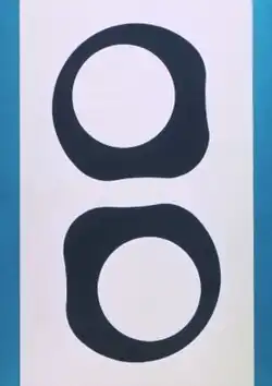 Between 1993 and 1996, in shows at Max Protetch and Morris Healy, Spence continued to create visual complexity within simple configurations, relying on plays with similarity and difference, precise cropping, and repetition to push his images further into the nonfunctional, purely aesthetic realm.[33][42][43][34] Two-color works, such as Up and Up and Space Saver (both 1993), alternated in terms of figure and ground to complicate readings, while others, like Cover Up (1993) and Goggleplex (1995), rotated and repeated simple forms (zigzags or letters, outlines of goggles) to create rhythmic visual puzzles that, given time, snapped into recognizability for viewers.[12][44][3]