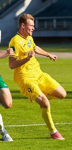 Andriy Volodymyrovych Khoma (Ukrainian: Андрій Володимирович Хома; born 23 September 2001) is a Ukrainian professional footballer who plays as a centre-forward for Ukrainian club Prykarpattia Ivano-Frankivsk.[1]