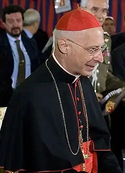 Angelo Bagnasco (Italian pronunciation: [ˈandʒelo baɲˈɲasko]; born 14 January 1943) is an Italian Cardinal of the Catholic Church. He was Archbishop of Genoa from 2006 to 2020. He was President of the Italian Episcopal Conference (CEI) from 2007 to 2017 and was elevated to the rank of cardinal in 2007. He was President of the Council of the Bishops' Conferences of Europe (CCEE) from 2016 to 2021.
