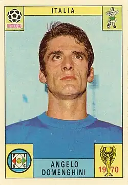 Angelo Domenghini (Italian pronunciation: [ˈandʒelo domeŋˈɡiːni]; born 25 August 1941) is an Italian football manager, and former player, who played as a forward, often as a right winger, or even as a striker.[2] Despite his creative role, he also had a notable eye for goal, as well as excellent technical ability, which, along with his acceleration and agility, allowed him to beat players with the ball, in particular during one on one situations.[3][4] He represented Italy in their victorious UEFA Euro 1968 campaign, as well as at the 1970 FIFA World Cup, where they finished in second place, playing in the finals of both tournaments.[4]