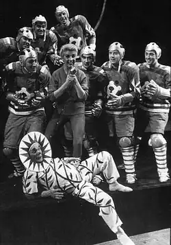 The original Stockholm production by Göran Gentele was seen at the Edinburgh Festival in 1959 and at Covent Garden in 1960, the latter featuring Hallin, Elisabeth Söderström and conducted by Ehrling.[5] In Hamburg in early 1960, "For about twenty minutes the usually cool-headed audience in the Staatsoper ran riot" at the end, mixing boos and bravos; conducted by Leopold Ludwig and featuring Joan Carroll, Helga Pilarczyk, Toni Blankenheim and Ratko Delorko this was a production by Günther Rennert.[6] The opera was the first production of the new opera house in Gothenburg in 1994.[7][8]