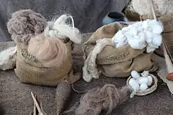 Wool is fiber derived from animal fur. Sheep are the principal source of wool, but fiber made from the hair of other mammals, such as alpacas, and rabbits, may also be called wool.