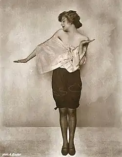 Berber's dances – which had names such as "Cocaine" and "Morphium"[5] – broke boundaries with their androgyny and total nudity, but it was her public appearances that really challenged social taboos. Berber's overt drug addiction and bisexuality were matters of public gossip.[6] In addition to her addictions to cocaine, opium and morphine, one of Berber's favourite forms of inebriation was chloroform and ether mixed in a bowl.[7] This would be stirred with a white rose, the petals of which she would then eat.[8]