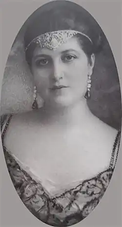 During the marriage ceremony of king Alfonso XIII of Spain in Madrid, Sir Jagatjit Singh Sahib Bahadur, the Maharaja of the princely state of Kapurthala watched her performances in a cafe-concert. He seduced her and stayed with her throughout the wedding but left after the bombing of the royal couple (31 May 1906). Later, however, her friends Romero de Torres, Ramón María del Valle-Inclán and Pastora Imperio convinced her to further meet him in Paris. He had her educated (including in French) in order that he could explain his love for her.[1] They married on 28 January 1908. After a Sikh marriage in India, she changed her name to Rani Prem Kaur Sahiba.[2]