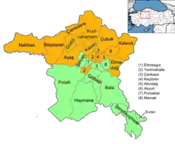 Ankara is a Turkish province divided into three electoral districts of the Grand National Assembly of Turkey. It elects thirty-six members of parliament (deputies) to represent the province of the same name for a four-year term by the D'Hondt method, a party-list proportional representation system.