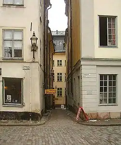 - ^ "Innerstaden: Gamla stan". Stockholms gatunamn (2nd ed.). Stockholm: Kommittén för Stockholmsforskning. 1992. p. 51. ISBN 91-7031-042-4.