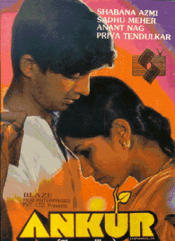 Ankur (English: The Seedling) is a 1974 Indian Hindi-language drama film directed by Shyam Benegal in his directorial debut. The film features Anant Nag and Shabana Azmi, both in their acting debuts. Though Shabana Azmi had acted in other films as well, Ankur was her first release.[2]