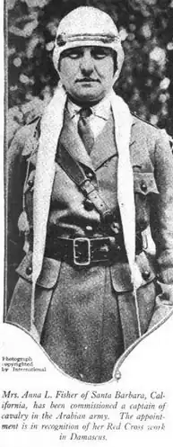 Anna Linderfelt Fisher (1878 – October 17, 1939) was an American Red Cross worker who ran an orphanage in Damascus. She was an advisor to Faisal I of Iraq in the short-lived Arab Kingdom of Syria in 1920, and held the rank of captain in the Syrian army. In 1927 she was appointed to the Ministry of Education in Iraq.