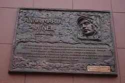 Plaque commemorating Anna Maria Hinel on the building at Florianska Street 8, in Warsaw in Poland