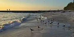 A groin on Cortez Beach at sunset