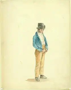 Anna Maria von Phul's earlier sketches and watercolors are mostly limited to landscapes and silhouettes.[9] Her later works depict various aspects of the local Creole life in the St. Louis area, which later earned her the title, "the Eyes of the Missouri Territory".[10] Her watercolors are small and painted delicately, but provide significant insights into Creole life in St. Louis during the early 1800s. These paintings are especially important because they illustrate the colors of the Creole culture.[11] Some of her works depict the people of the Creole culture as working class.[1]