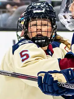 During the 2020–21 season in her junior year, she recorded one goal and four assists in 16 games, in a season that was shortened due to the COVID-19 pandemic.[2] She redshirted during the 2021–22 season, after being invited to the 2022 Olympic Residency Program in preparation for the 2022 Winter Olympics.[4][5] During the 2022–23 season in her senior year, she recorded one goal in three games, before suffering a season-ending injury.[2] She served as team captain her final three years at Minnesota State.[6]