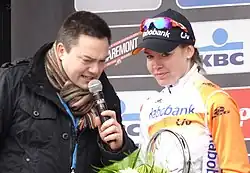 At the World Championships in September in Richmond, she claimed the silver medals in both the individual time trial and the road race.[39] She finished at two seconds from Linda Villumsen in the time trial,[40] and was narrowly beaten by Lizzie Armitstead in the road race after she started the sprint from afar.[41] She ended the year as second in the UCI Road World Cup, behind Armitstead, and was awarded the Gerrit Schulte Trophy for best female Dutch cyclist of the year.[42]