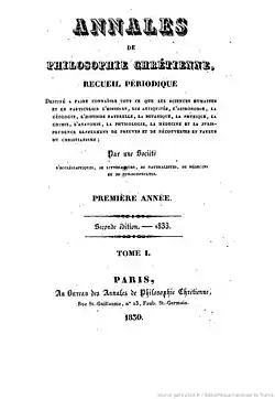 Annales de philosophie chrétienne was a monthly Catholic journal that existed from 1830 to 1913. It was founded by Augustin Bonnetty.[1]