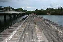 Funding for a new bridge was announced in 2000.[2] The new bridge was built parallel and west of the original bridge.