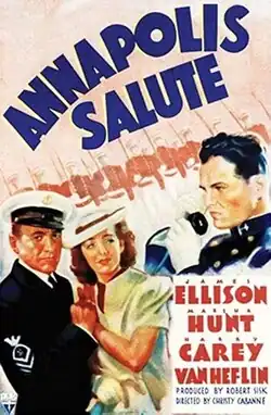 Annapolis Salute is a 1937 drama film directed by Christy Cabanne and starring James Ellison, Marsha Hunt and Harry Carey. It was produced and distributed by RKO Pictures. A few scenes were shot at William Paca House in Maryland.[2]