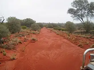 | The Anne Beadell Highway in South Australia. Heavy rain has washed out corrugations | |