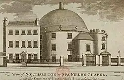 She became Lady Huntingdon's secretary living with her at Spa Fields in Islington.[1] Lady Huntingdon had bought a huge chapel in 1779 which attracted congregations of 2,000, but she called "her private chapel". The building had been built as a Pantheon or theatre-in-the-round and it had a huge dome. Erskine and Huntingdon lived nest door in what had been the Dog and Duck and which had been rebuilt in 1756.[3]