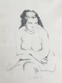 In 1906, Anne Goldthwaite traveled to Paris, where she lived at the American Girls' Club and explored her interest in the early modern painting styles of Fauvism and Cubism.[3][5] She met Gertrude Stein while sketching in the Luxembourg Gardens. According to Charlotte Rubinstein in American Women Artists, Goldthwaite explained that Stein "looked something like an immense dark brown egg. She wore, wrapped tight around her, a brown kimono-like garment and a large flat black hat, and stood on feet covered with wide sandals."[4] Stein invited Goldthwaite to visit her home, yet she hesitated due to Stein's "shabby" appearance. But Goldthwaite soon realized Stein's presence in the art world when encountering the extensive contemporary painting collection hung on the walls of her apartment.[4] Meeting one of the most influential pre-war avant-garde persons of the time gave Goldthwaite an opportunity to join the art circle of Henri Matisse and Pablo Picasso. She later said, "Fate gave me several years in Paris at the most exciting time: during the great reconstruction from art to modern art." During her time in Paris, Goldthwaite drifted to different studios in an attempt to find the right teacher. After much difficulty, she joined a small group of young artists who worked at 86 Notre Dame des Champs. Their work was periodically critiqued by Charles Guerin, a disciple of Cézanne. The group called themselves the Académie Moderne and held an exhibition each spring.[3]