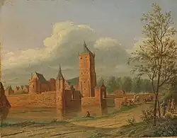 The Brederodes usually resided at Batestein Castle in the northwest corner of the city of Vianen.[14] The castle was beautifully furnished and the walls were papered with tapestries and gold wallpaper. The couple received many guests in Vianen, including Prince Frederick Henry and Countess Amalia of Solms-Braunfels, the counts of Nassau and Solms, the viscounts of Dohna and members of the States of Holland, who were received royally.[15] Because Johan Wolfert frequently had to visit The Hague for his duties, he bought a representative building on 3 Lange Vijverberg from Countess Emilia of Nassau in 1626.[16] After Johan Wolfert was appointed governor of the city of 's-Hertogenbosch and the Meierij on 27 January 1630, the family moved into the Jesuit college as their official residence.[17] The city magistrate donated costly tapestries for the palace in 1631 and contributed to Anne Joanne's travel expenses, elegantly wrapped in a fine purse, when she visited the city.[18]