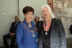 During the annual Blake Awards ceremony in Auckland in 2020, Salmond received the Blake medal in recognition of her work to build intercultural understanding between Māori and Pākehā. James Gibson, CEO said that "Dame Anne Salmond is one of New Zealand's most outstanding leaders and trail-blazers...[and]...her life-long study of Māori culture, and her efforts to improve intercultural understanding between Māori and Pākehā has improved New Zealanders' understanding of their own history".[54] In the 2021 New Year Honours, Salmond was appointed to the Order of New Zealand for services to New Zealand.[55][56]