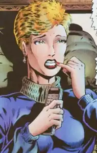 Anne Weying was a successful lawyer, and Eddie Brock's ex-wife. In her first appearance, she is a brunette with glasses. In later appearances, she loses the glasses and goes blonde. Weying assisted Spider-Man by sharing some of Eddie's history. She later followed Spider-Man to the amusement park where Venom had Peter Parker's (fake) parents. She confronted her insane ex-husband, and managed to convince Eddie to give up this vendetta. Later, Sin-Eater shot Anne to which the Venom symbiote temporarily bonded with her to save her life.[2] She-Venom then lashed out against the men who had hurt her with such violence that Eddie was afraid for her and compelled the Venom symbiote back. Anne retched upon seeing the pile of bodies she had left behind, claiming that the Venom symbiote had made her kill her victims, but Eddie told her that the Venom symbiote wouldn't force its host to do something they did not want to.[3]