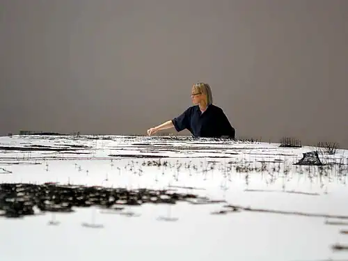 Anne Wilson (born 1949) is a Chicago-based visual artist. Wilson creates sculpture, drawings, Internet projects, photography, performance, and DVD stop motion animations employing table linens, bed sheets, human hair, lace, thread and wire. Her work extends the traditional processes of fiber art (techniques such as stitching, crocheting, and knitting) to other media.[1] Wilson is a professor in the Department of Fiber and Material Studies at The School of the Art Institute of Chicago.[2][3]